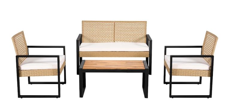 The 4-piece patio set with 5-cm thickness sponge cushions will make you feel much more comfortable. With the simple design but elegant color, weaved by the skilled rattan furniture craftsmen, the BeNK 4-piece Wicker Sofa Set's quality is controlled well by the QC team. The powder-coated steel frames are durable, sturdy, and rust-resistant, and the all-weather resin wicker which complements any decor style. 1 set includes 1 Double Chair, 2 Single Chairs, and 1 Conservation Table which is perfect for the poolside, deck, or patio, and the cushioned seats will let you and your family or friends sit back, relax and enjoy the great outdoors.